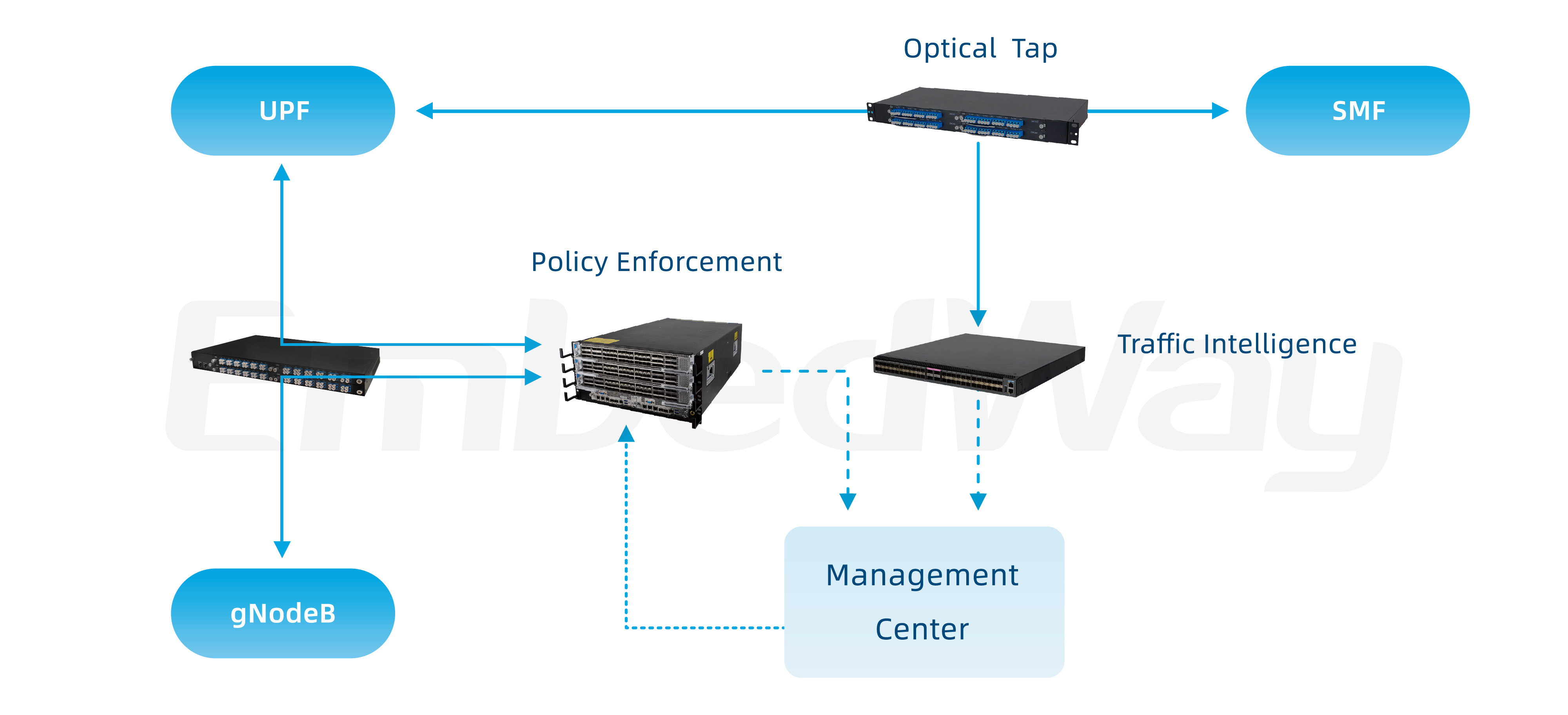 With the development of mobile internet from 4G to 5G, its network architecture has undergone significant evolution, which brings new challenges to the traffic analysis and interception systems based on the 4G architecture. As a long-term partner of operators, EmbedWay has supported various analysis, value-added systems, and legal interception capabilities in the 5G mobile internet perfectly after years of 5G network deployment practice.